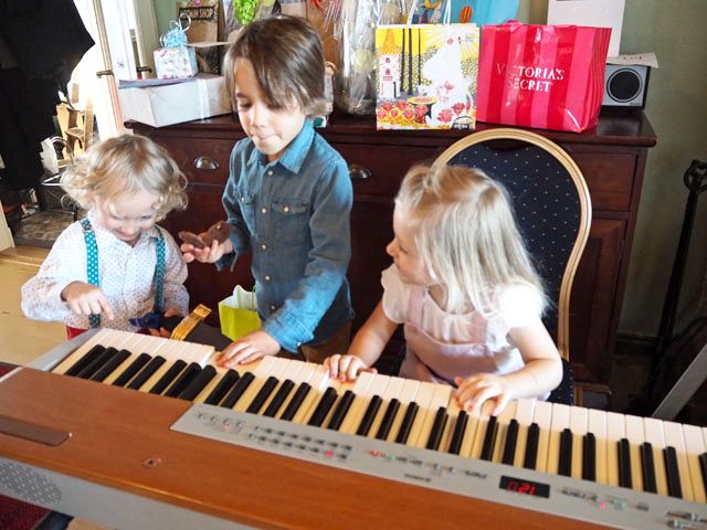 Taustamusiikista vastasivat muusikkosukulaiset Witsu-vaari ja tätini Anu. Esikoisemme Miko serkkuineen kokeili myös pianistin hommia. Juhla oli vapaamuotoinen ja pääpaino oli yhdessäololla. Juhlat kestivät kolme tuntia ja se oli juuri sopiva kesto.