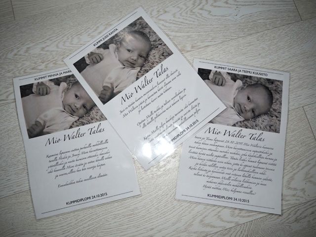 Kummeilta pyysin kummilupaukset ja tein kummidiplomit muistuttamaan näistä lupauksista. Näillä lupauksilla meille kasvaa taatusti hieno poika. Miolla on viisi kummia ja tässä Jussin lupaus.